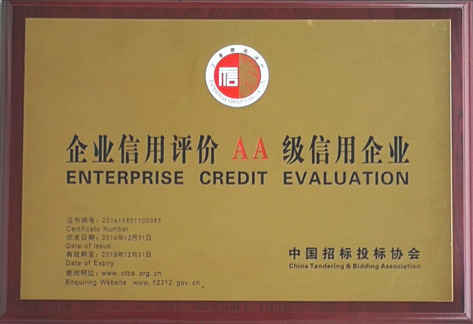 企業(yè)信用評價AA級信用企業(yè)