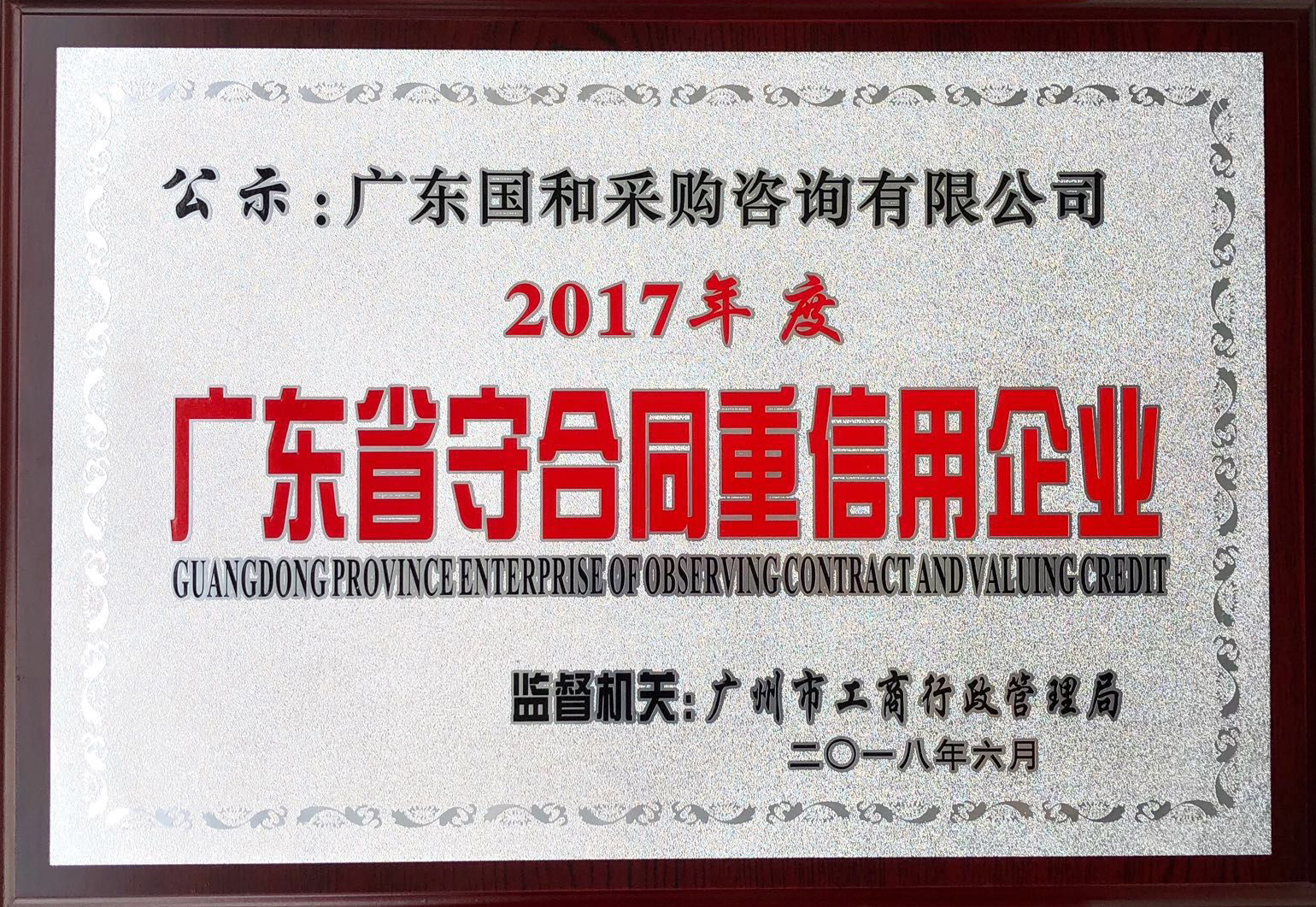 2017年度廣東省“守合同重信用”企業(yè)